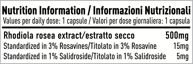 - Estratto secco titolato al 3% in rosavine e al 1% in Salidroside, i principali composti attivi della pianta