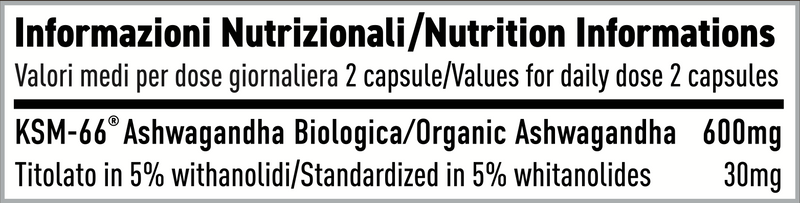 Ogni capsula contiene 300mg di ashwagandha biologica: la dose consigliata è di 1 capsula due volte al giorno per ottenere i migliori benefici.
