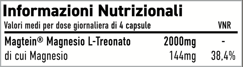 Tabella Nutrizionale di Magtein Natoo in capsule: